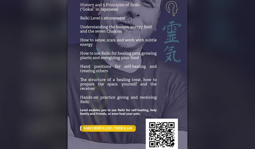 During this training, you will explore the history of Reiki and the 5 Principles of Reiki (Gokai), receive your Reiki Level 1 attunement, and learn how to better understand the human energy field and the seven chakras. You will also be guided through how to sense, scan, and work with subtle energy in a practical and accessible way.