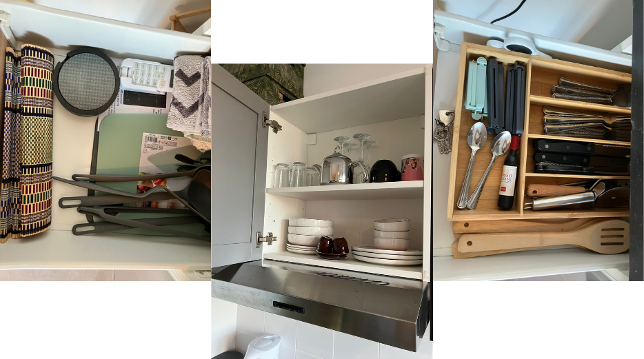 • Bathroom: cleaning products, shampoo, conditioner, body soap, shower gel, hot water, bidet